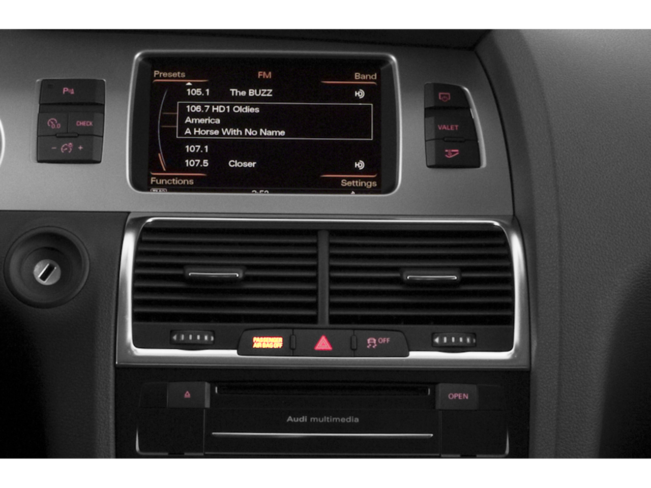 - Radio: Audi MMI Navigation Plus System -inc: color driver information system, HDD navigation w/voice control, Audi Connect w/online services, Sirius satellite radio, Audi music interface w/iPod cable, voice control system, HD radio technology and preparation for Bluetooth® mobile phone