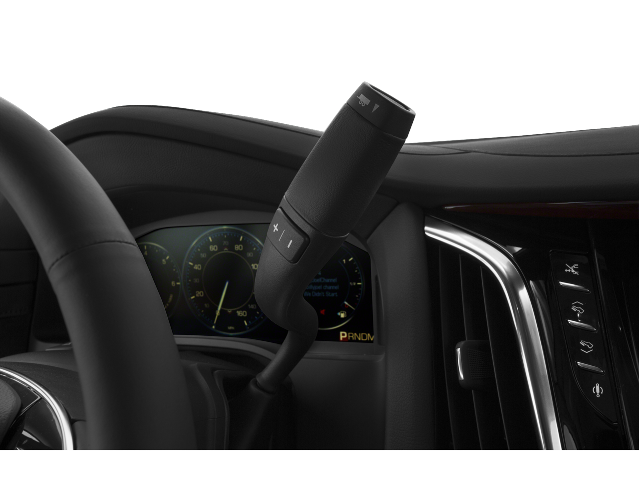 - Cadillac CUE Information and Media Control System with Embedded Navigation AM/FM stereo, 8" diagonal color information display featuring touch response, haptic feedback, gesture recognition and Natural Voice Recognition. Five USB ports, including one in the articulating storage door/bin, SD card slot and auxiliary audio port
